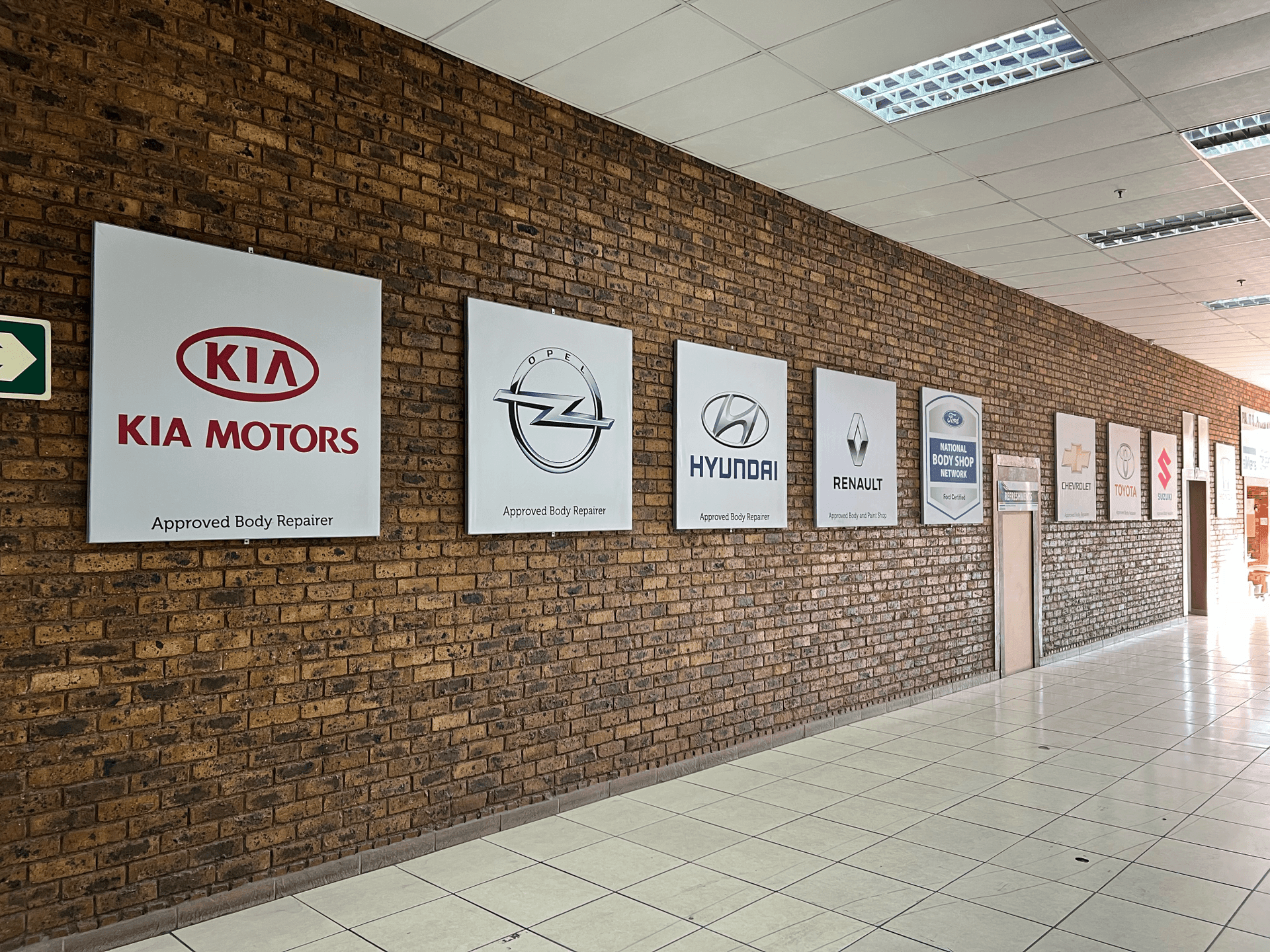We are based in Germiston. Our premises consists of our workshop which is equipped with state of the art equipment such as electronic chassis measuring systems and car benches, a paint shop which consists of a paint mixing room, a thinners room, a dedicated bumper bay, dry flatting bays, infrared lighting systems as well as three spray booths, a dedicated polishing area and two wash bays. Among these dedicated areas we also have a vehicle delivery area, quotation bay and ample parts store rooms.